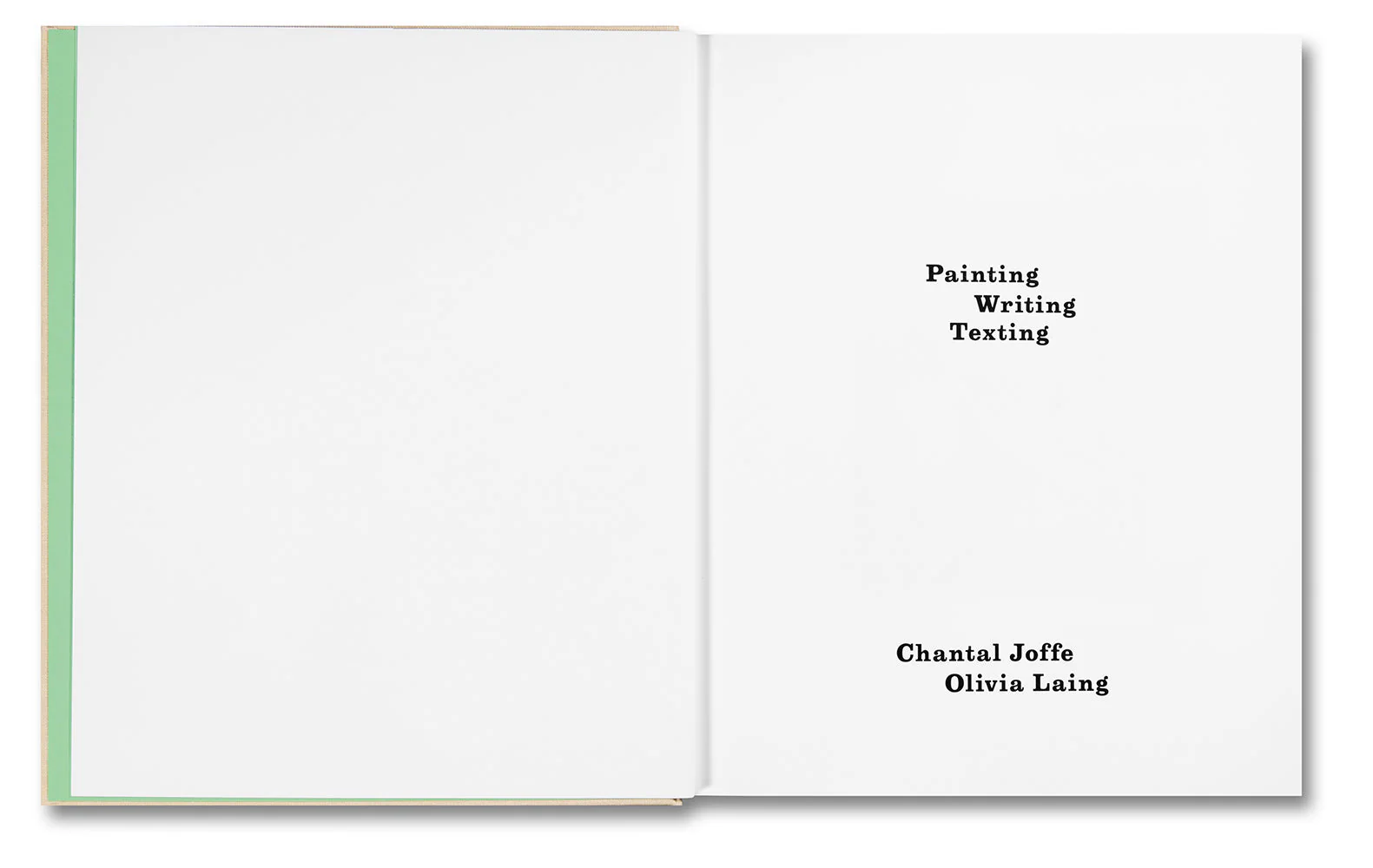 Painting Writing Texting chronicles the friendship between painter Chantal Joffe and writer Olivia Laing, which began in 2016 when Joffe approached Laing to ask if they would sit for a portrait. From this unexpected encounter, the two embarked on an expansive and ranging collaboration, fuelled by high-speed conversations about art, books, and their shared attempts to understand the world.